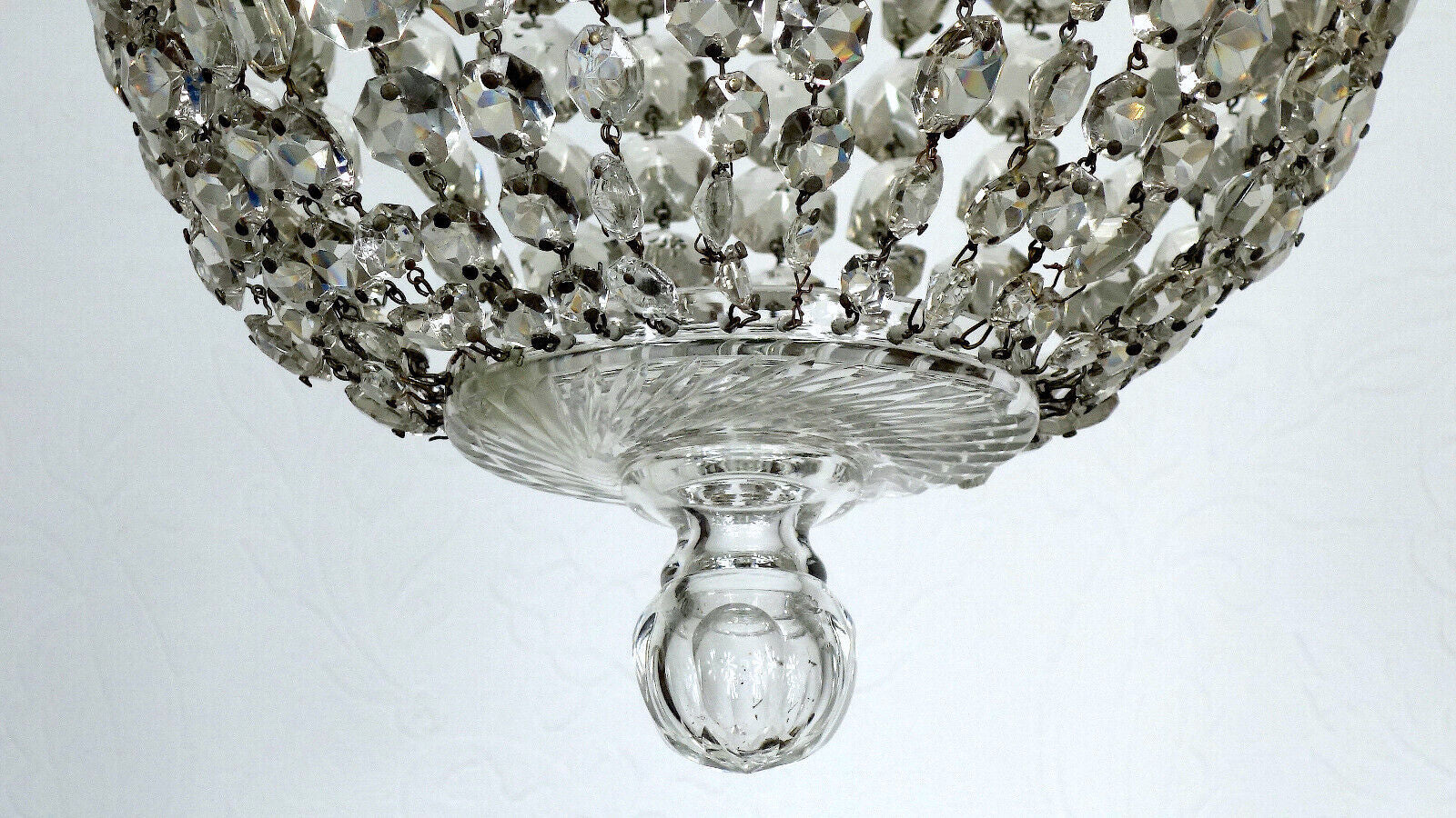 Traumhafte hoch qualitative Antik Jugendstil Französische Kristallglas Hollampe, Flurlampe, Lüster, Kronleuchter