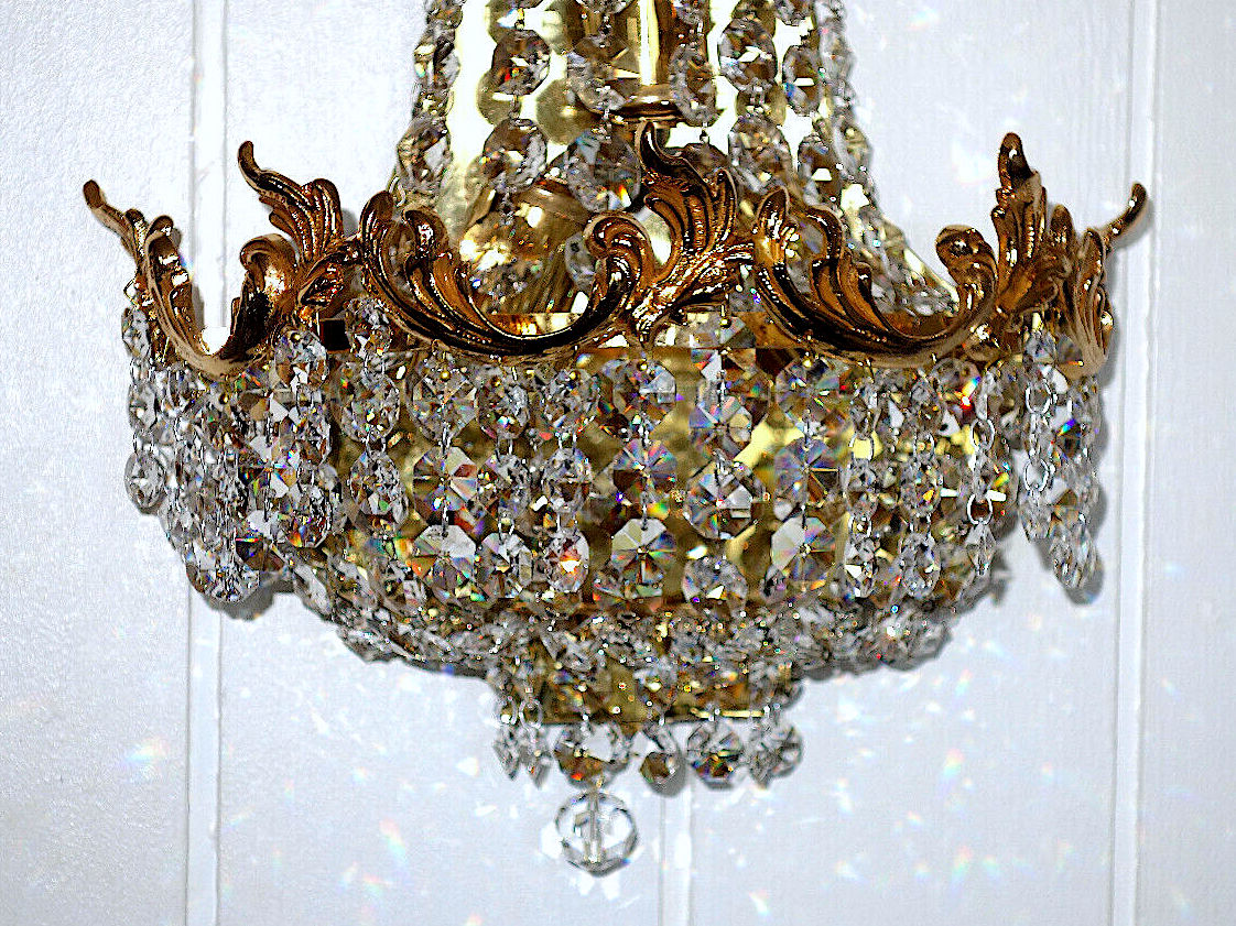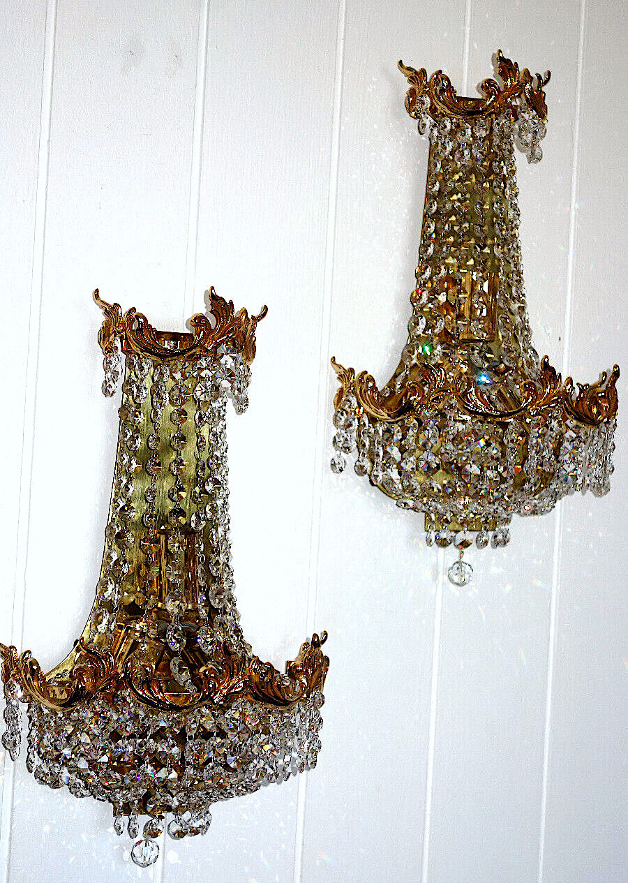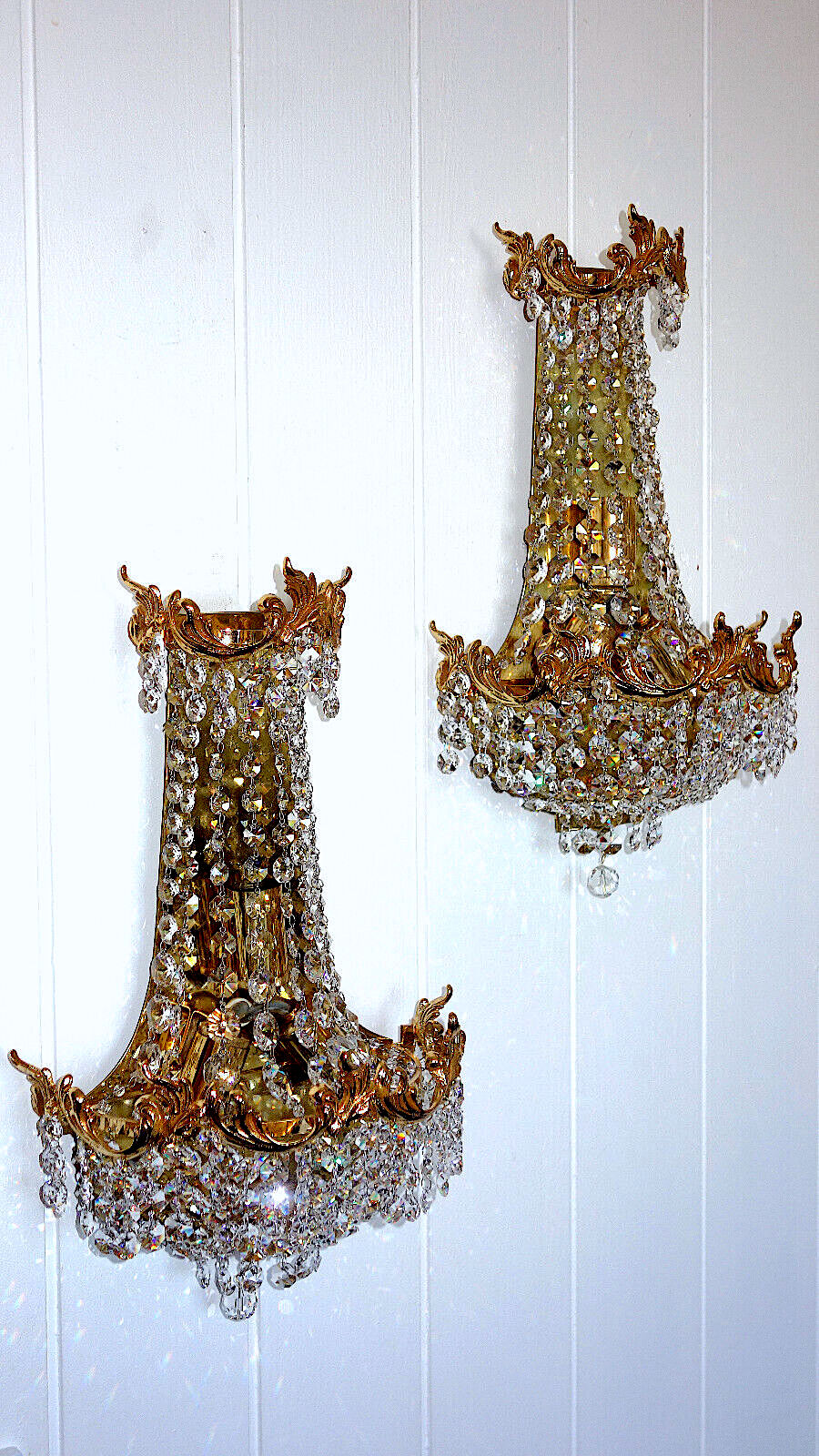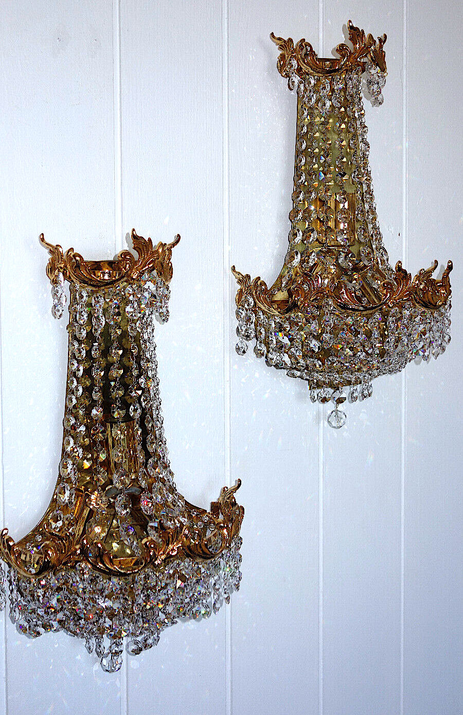 Ein Paar Hochwertige Antik Messing Bleikristall PALWA Wandlampen 43 cm Hoch