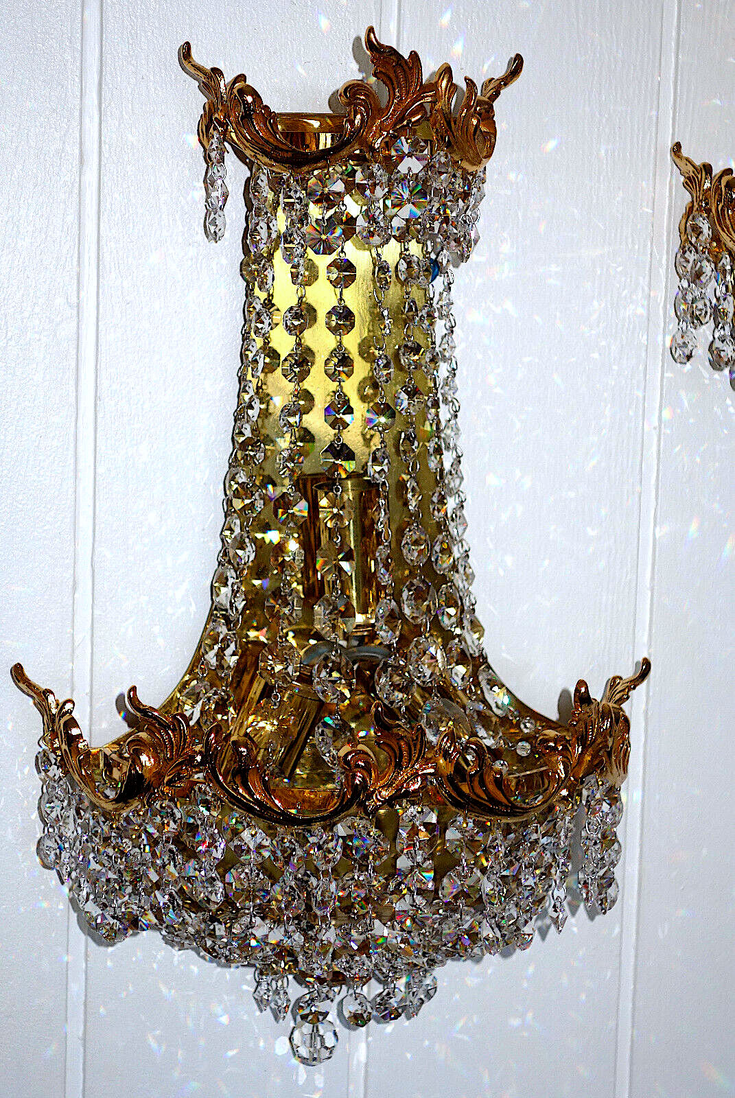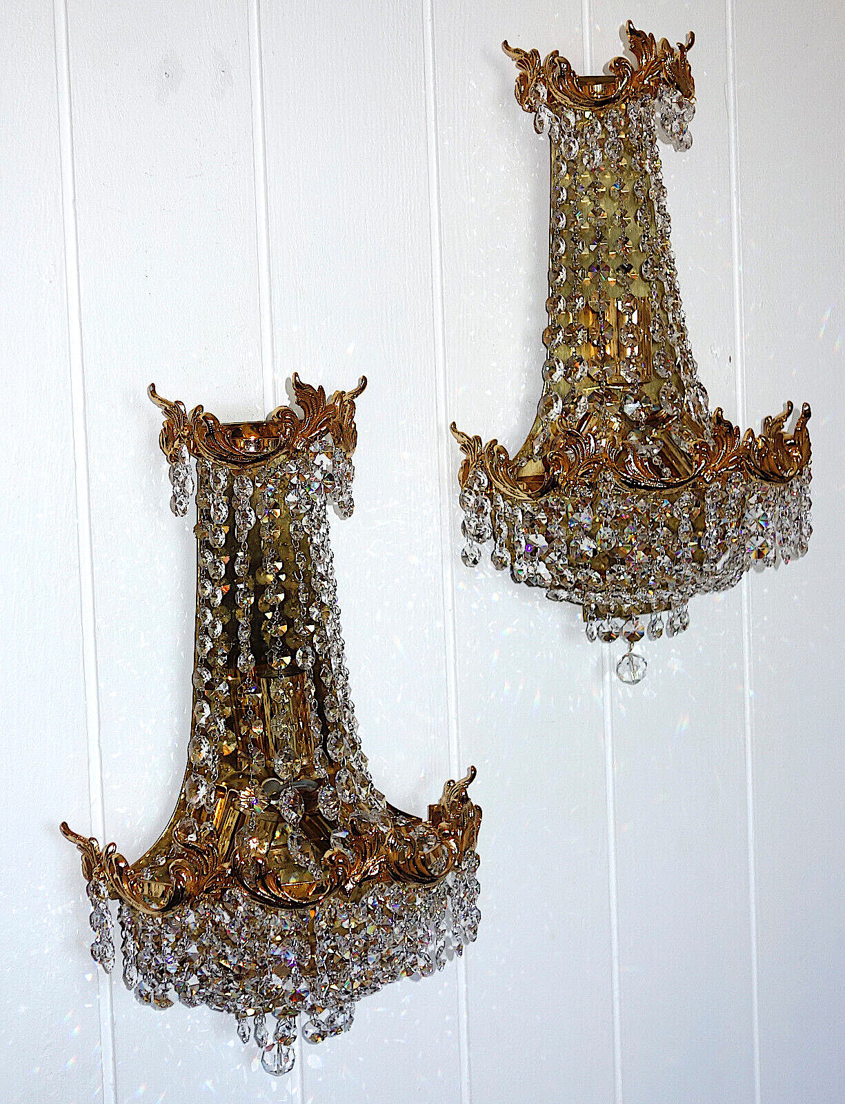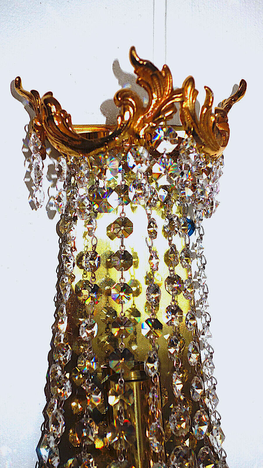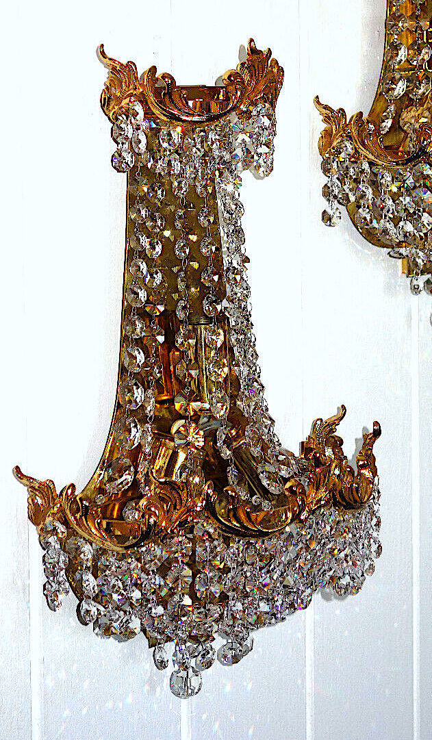Ein paar wunderschöne hochwertige seltene Messing Bleikristall Wandlampen von PALWA