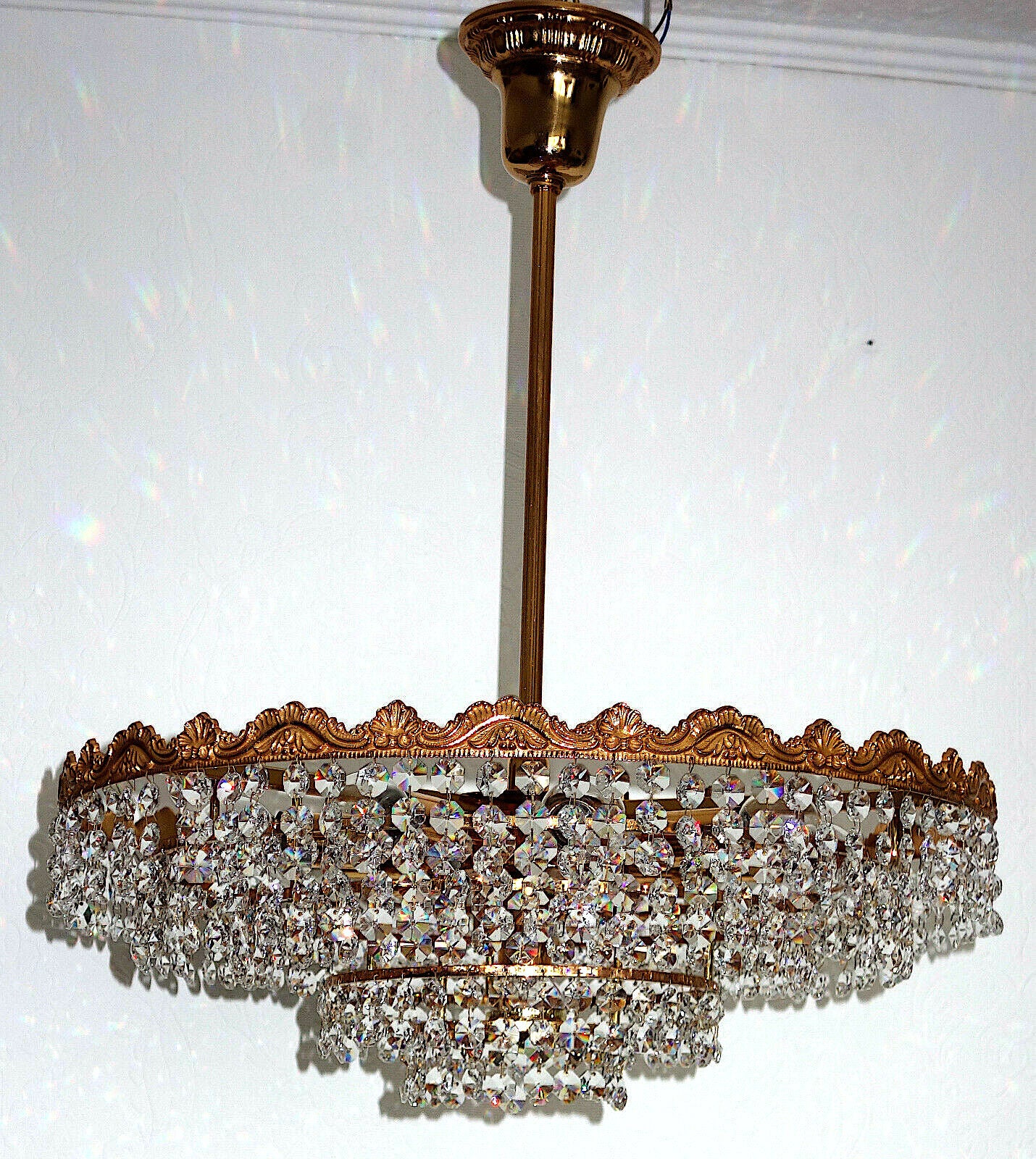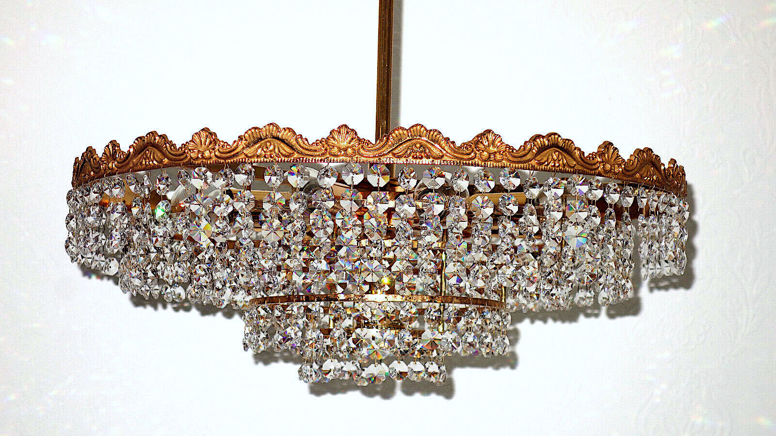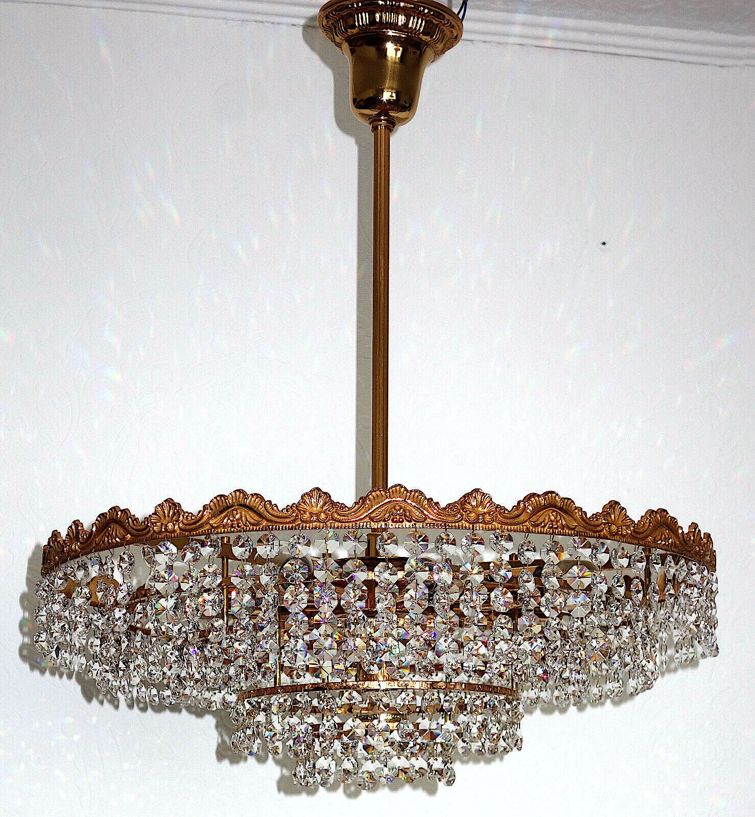 Hochwertige Antik Schröder Messing Bleikristall Kronleuchter, Lüster 10 Flammig