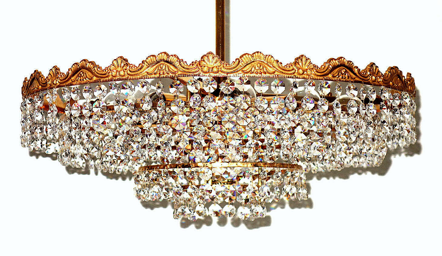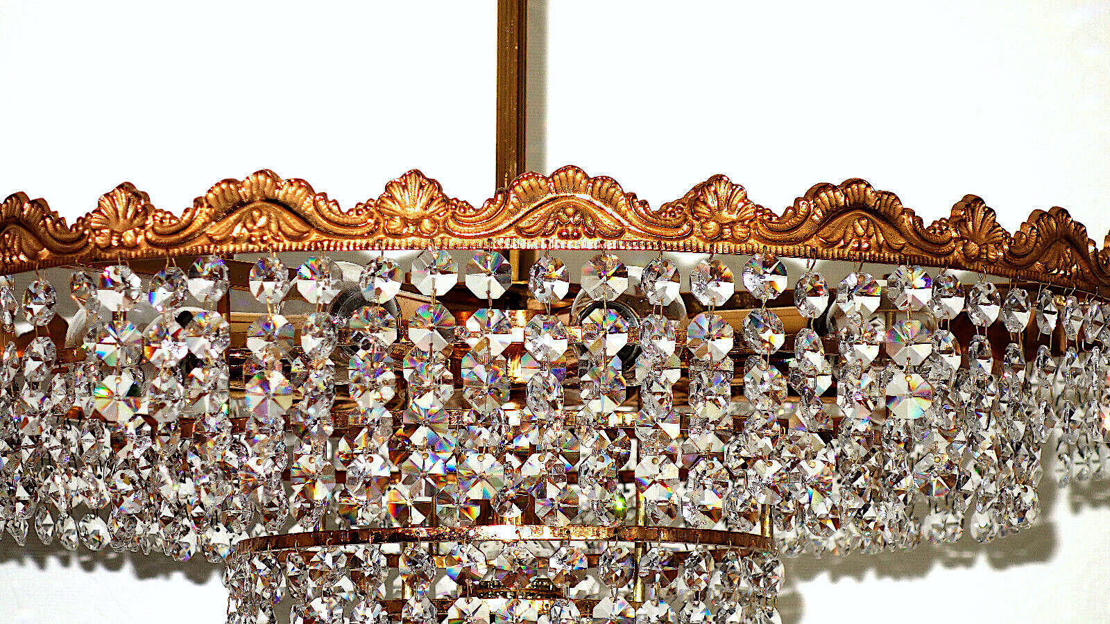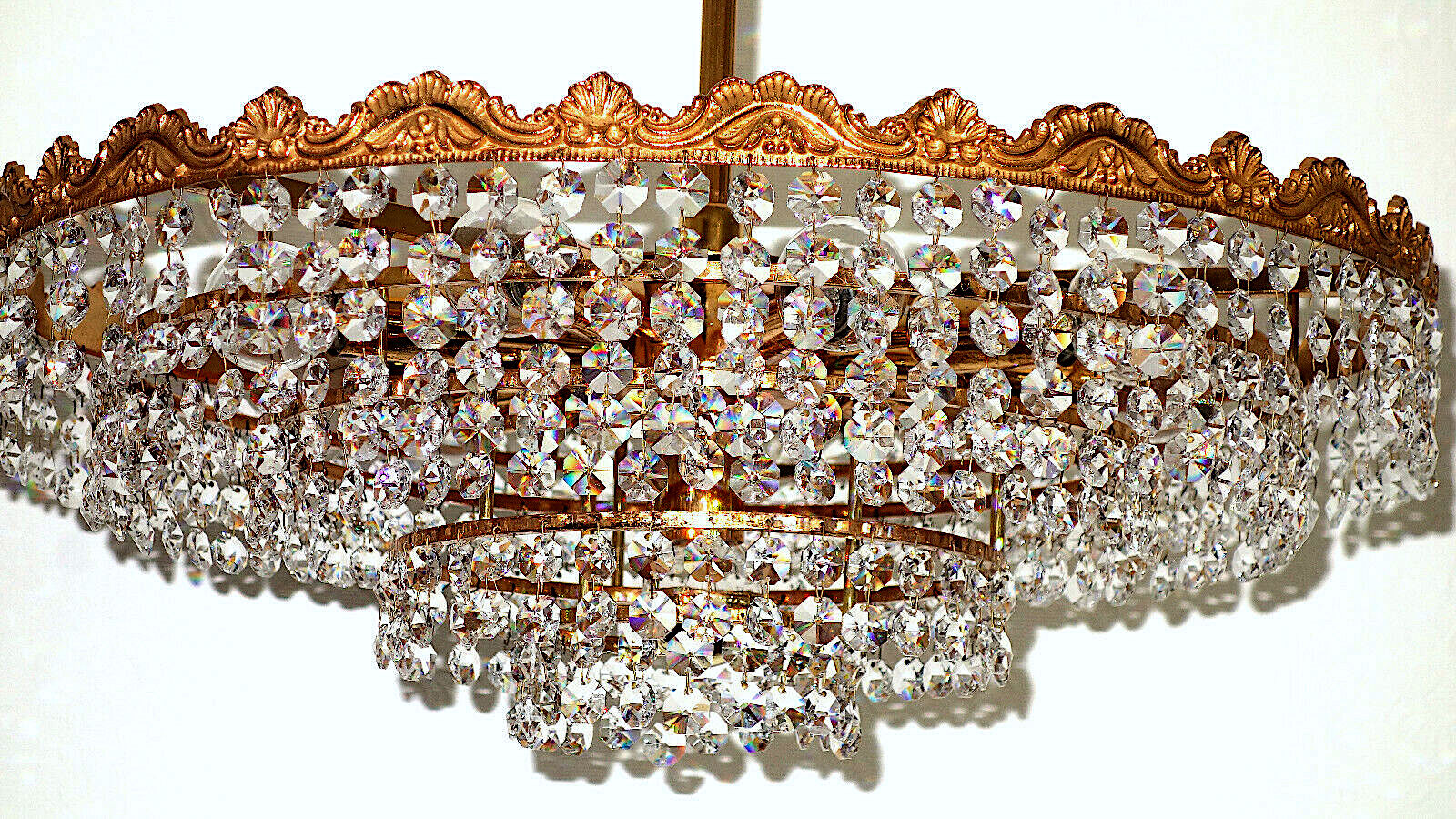 Hochwertige Antik Schröder Messing Bleikristall Kronleuchter, Lüster 10 Flammig