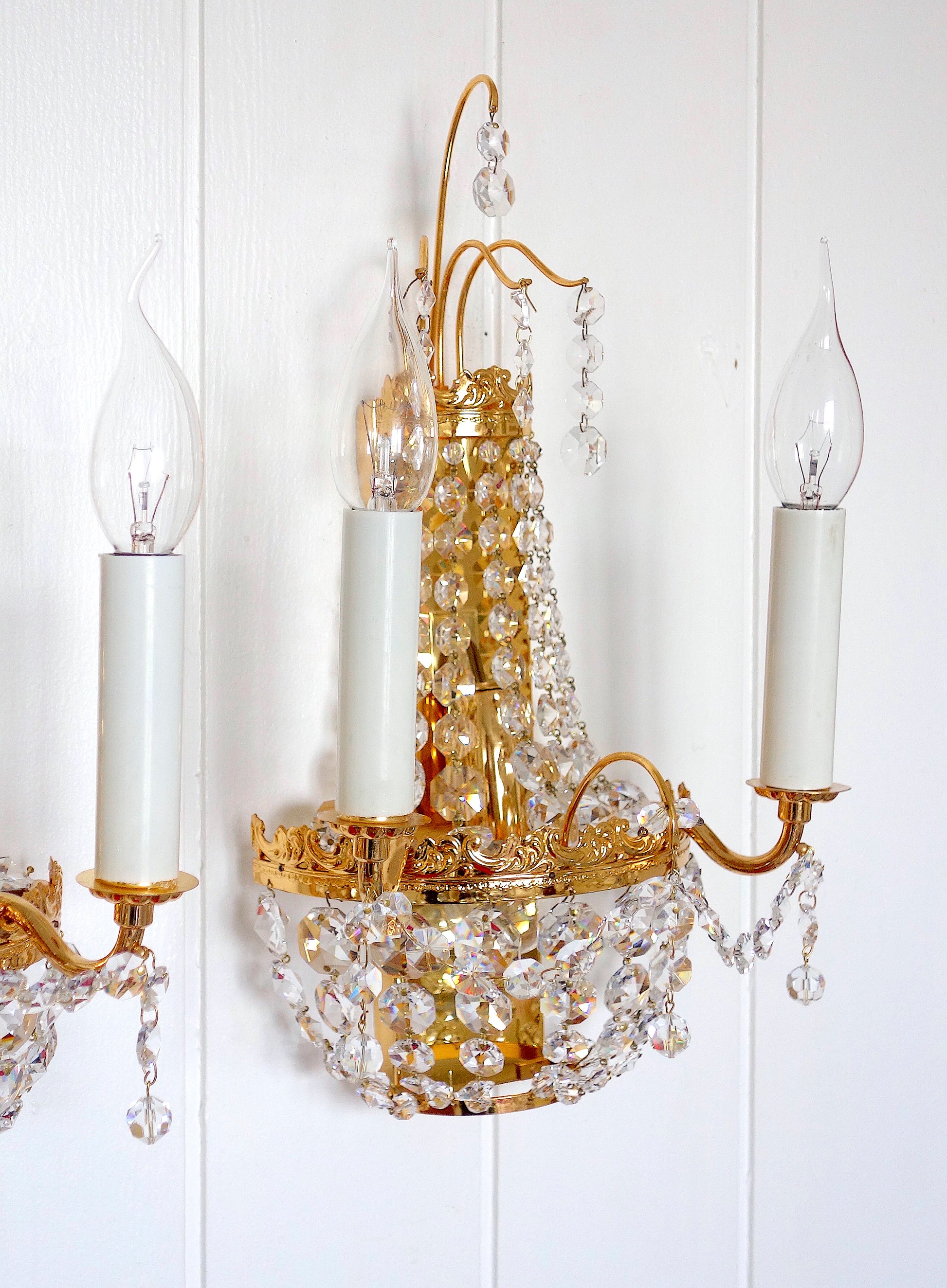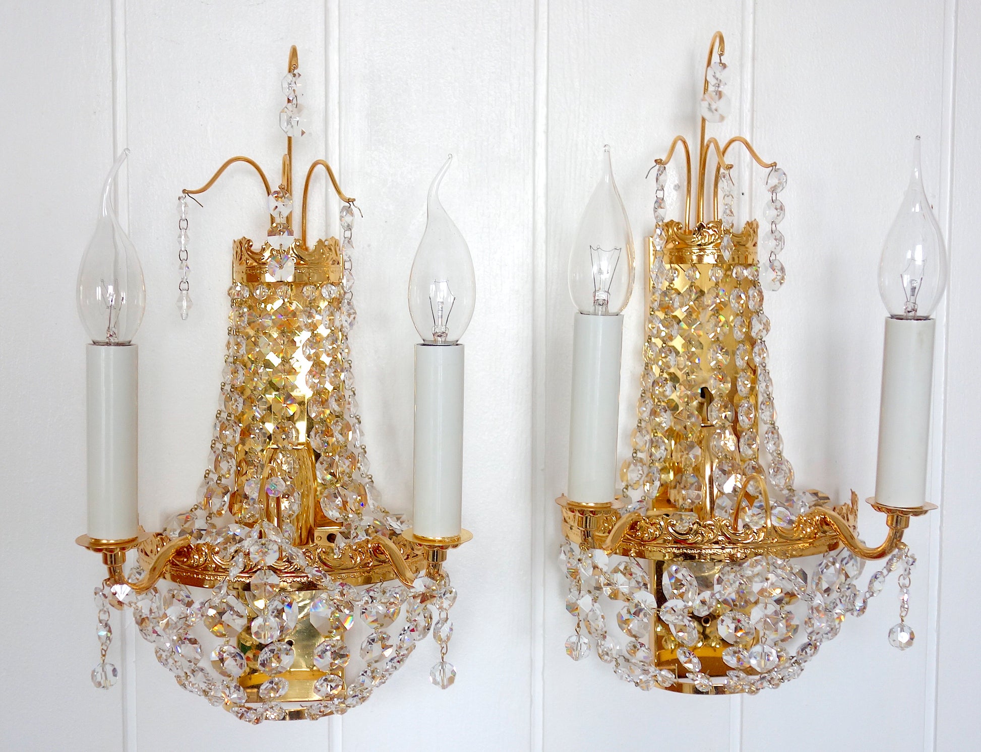 Hochwertige Ein Paar Palwa Messing Bleikristall Wandlampen je 3 Flammig, 1970er