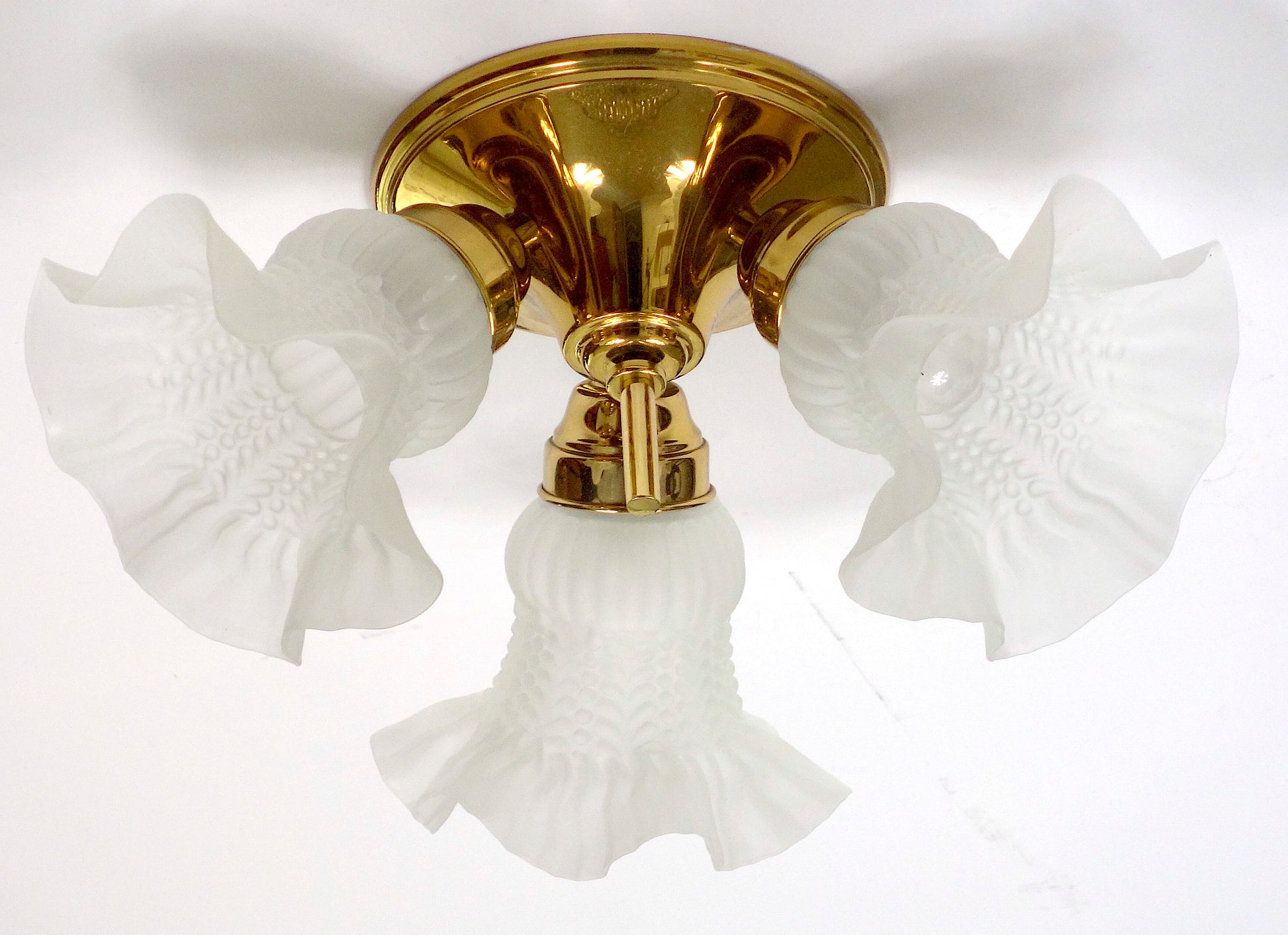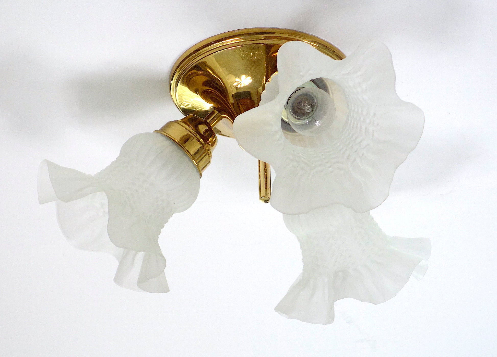 Die hochwertige Schröder u. Co. Deckenlampe ist eine perfekte Kombination aus stilvollem Design und hochwertiger Qualität. Ihr schlichtes Messinggestell und elegante Glasschirme sorgen für ein angenehmes und warmes Licht, das eine harmonisch-stilvolle Atmosphäre schafft. Ihre dekorative und robuste Konstruktion macht sie zu einem langlebigen und zuverlässigen Accessoire für jeden Raum.