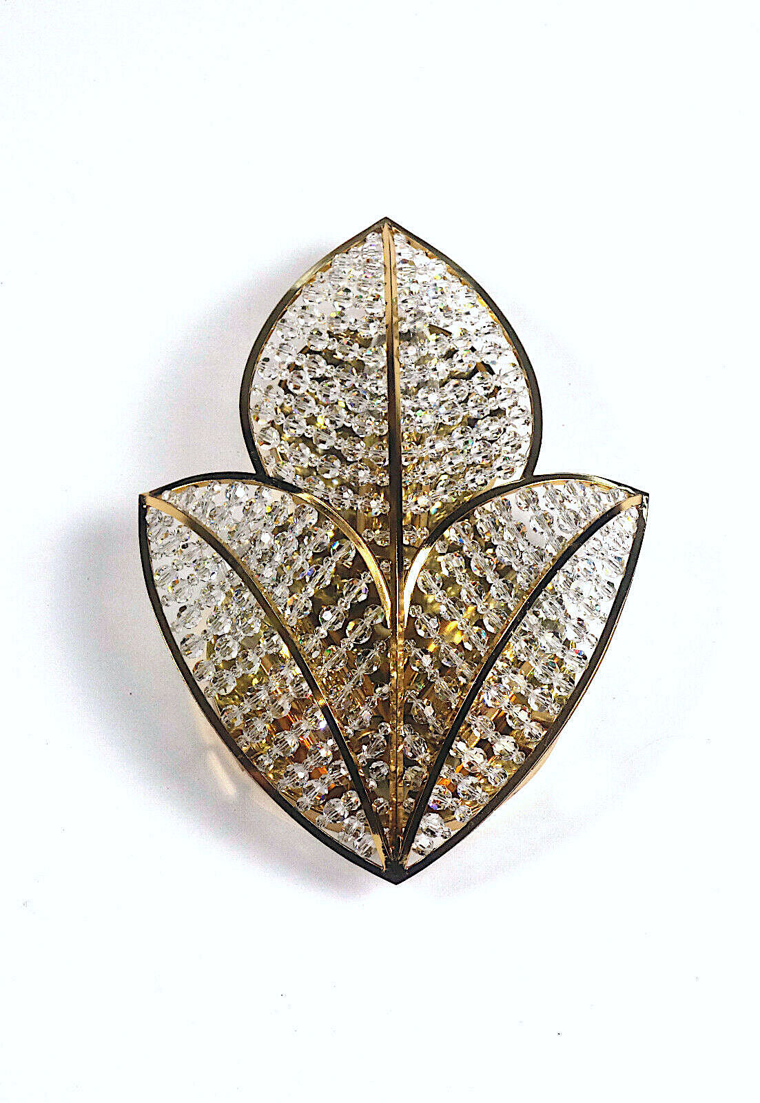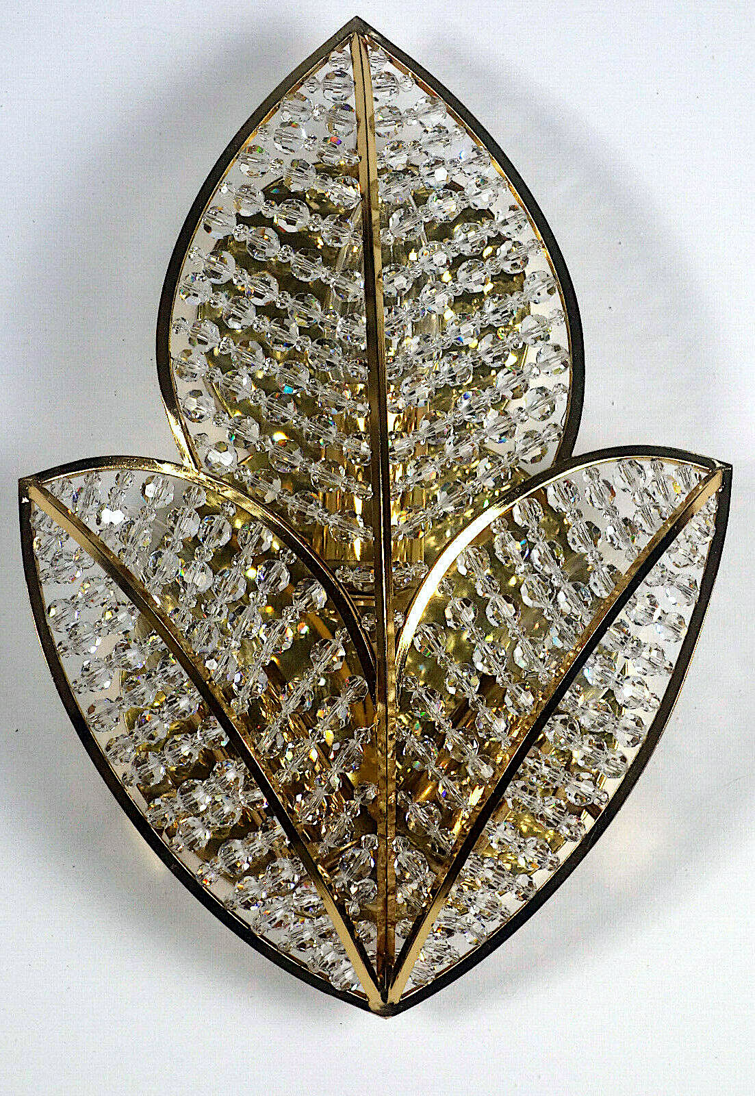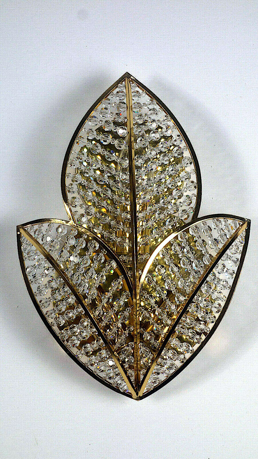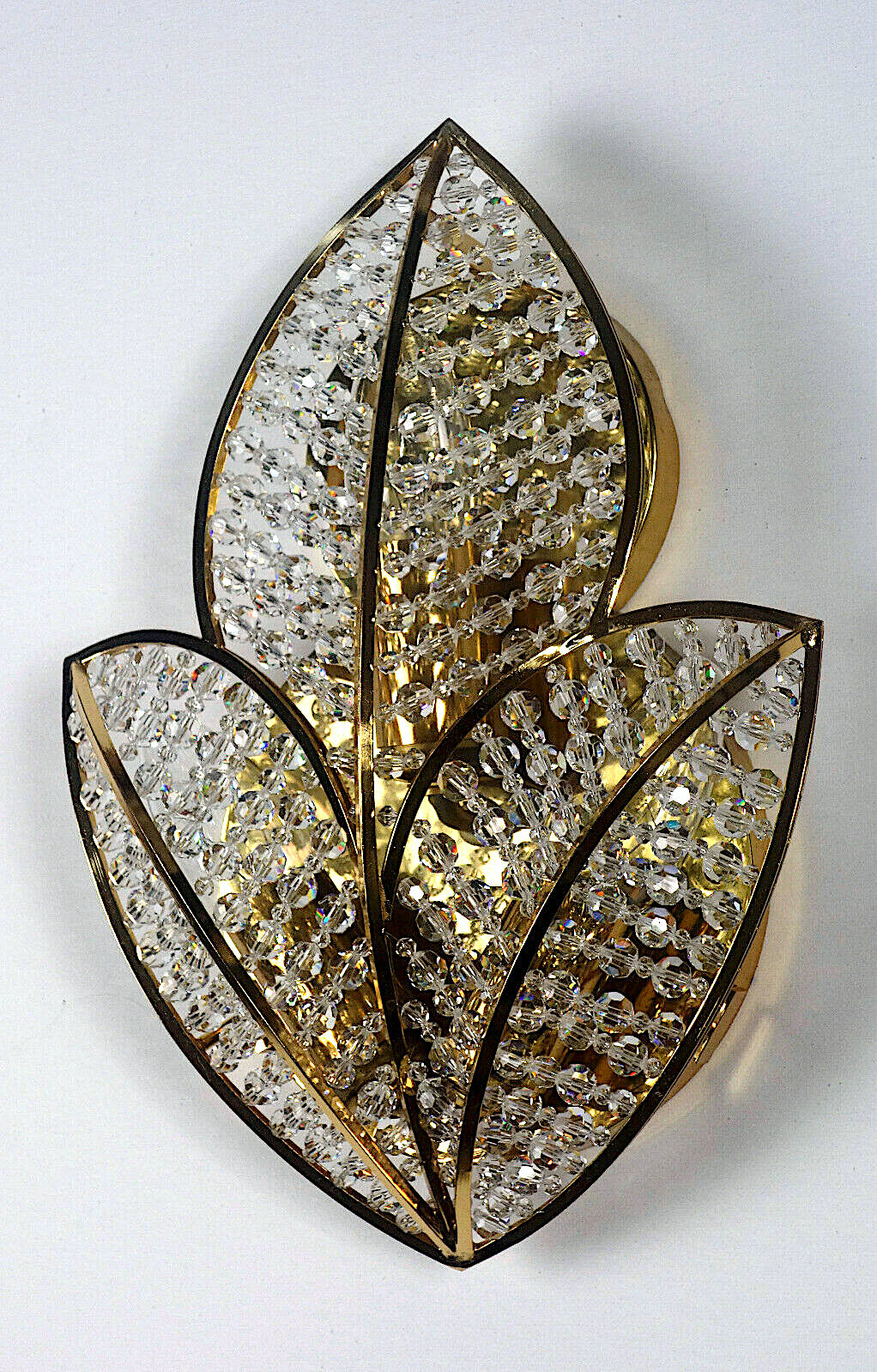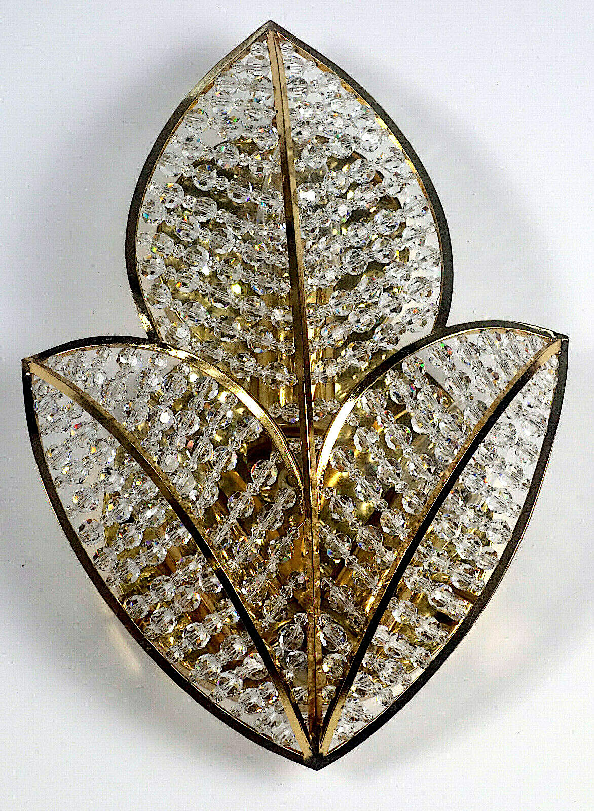 Wunderschöne hochwertige seltene Messing Bleikristall Wandlampe von PALWA aus den 60er Jahren