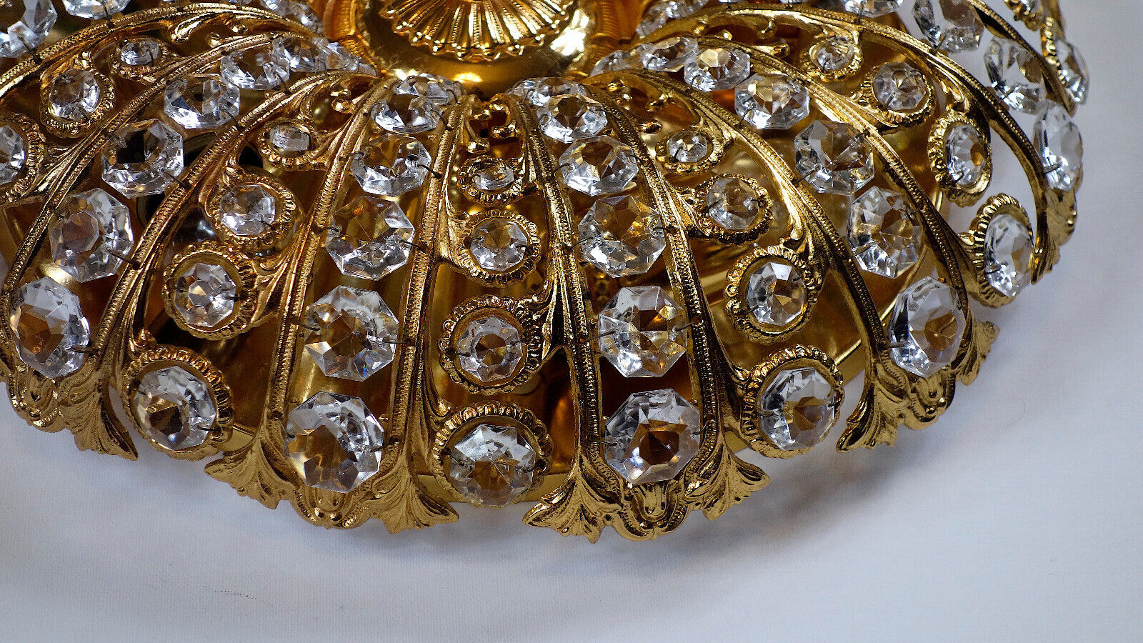 Peris Andreu Messing Kristall Plafonier Deckenlampe, Lüster 4 Flammig