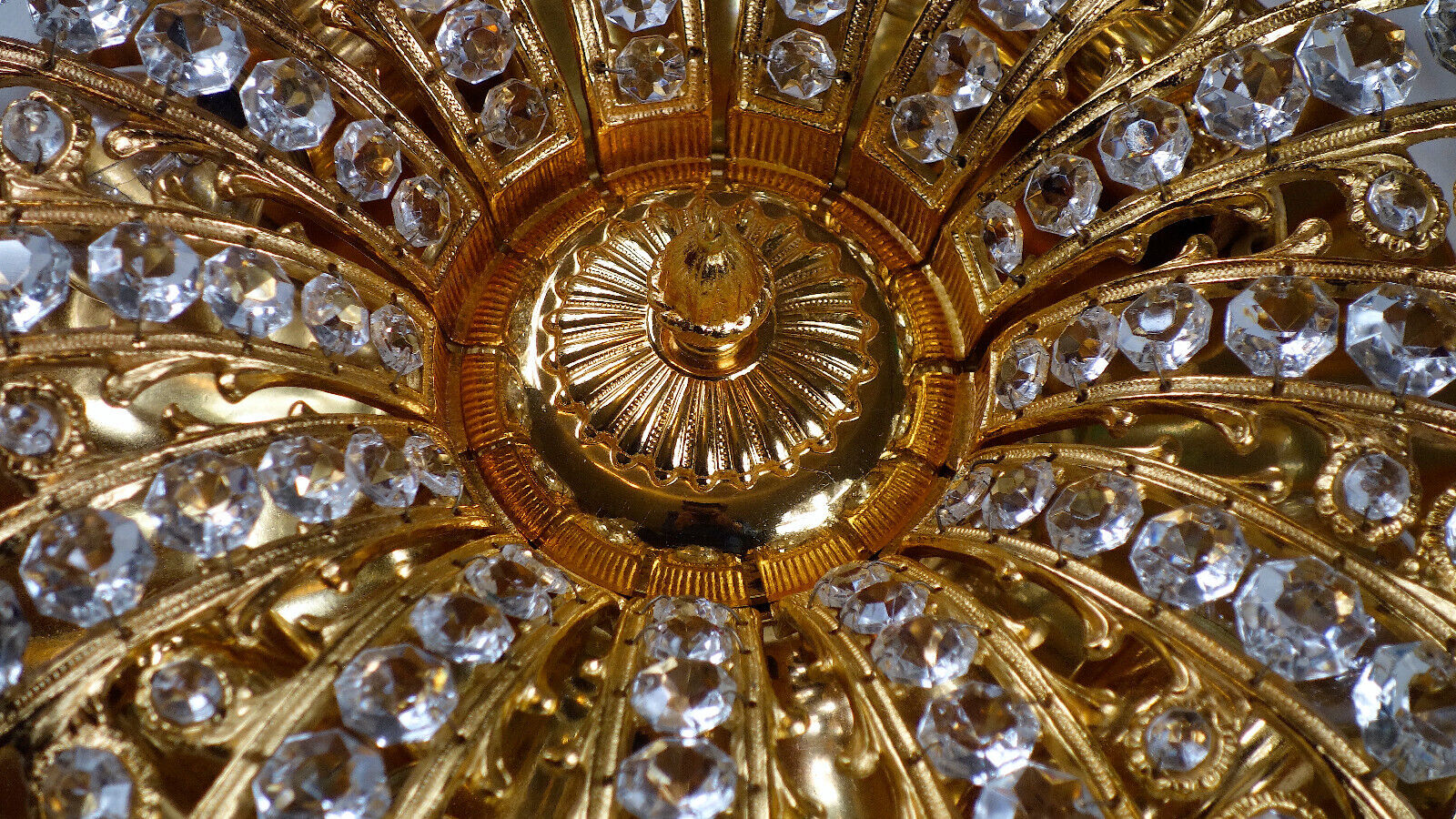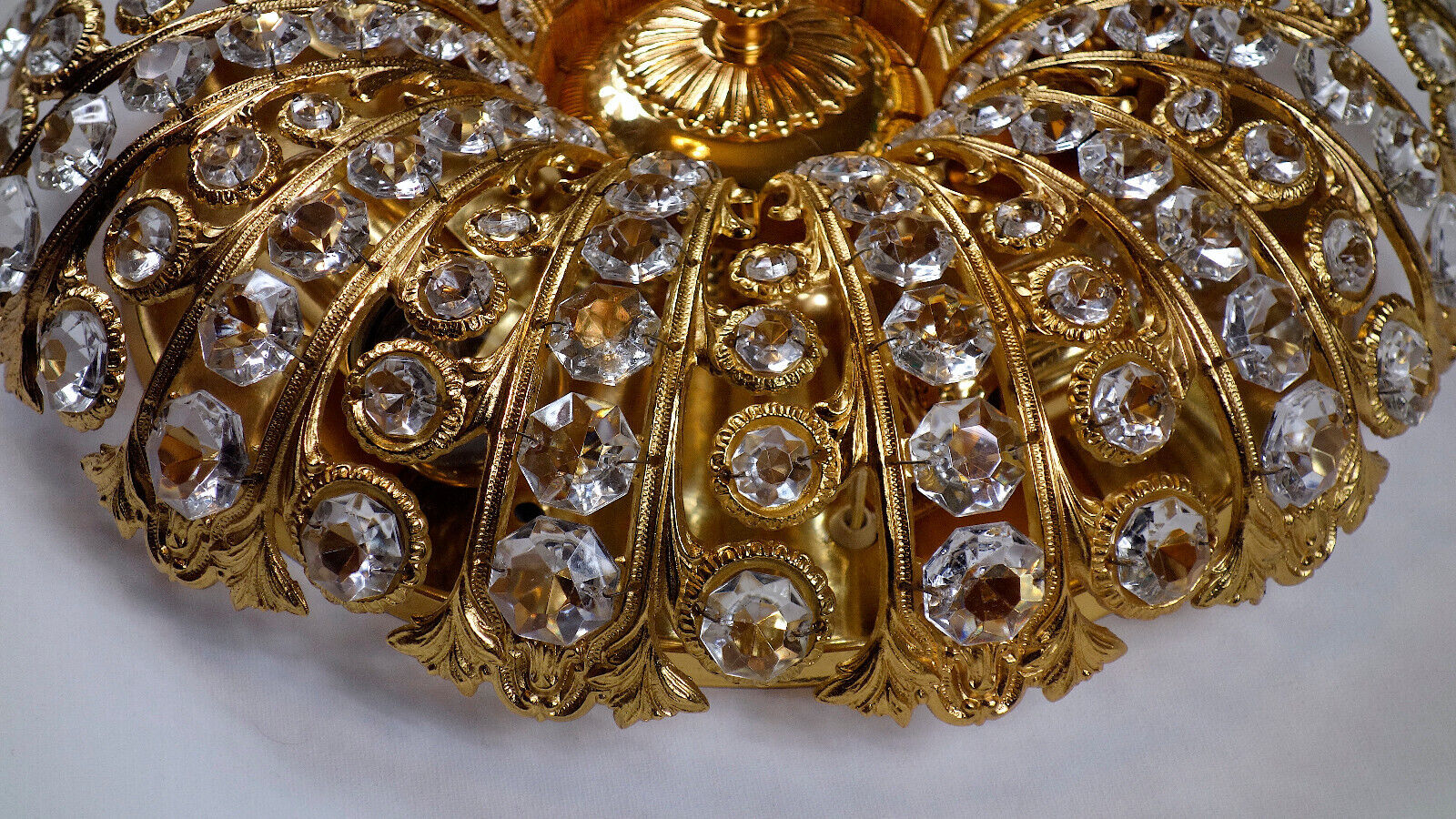 Korpus der Deckenlampe besteht aus wunderschön verziertem Messing