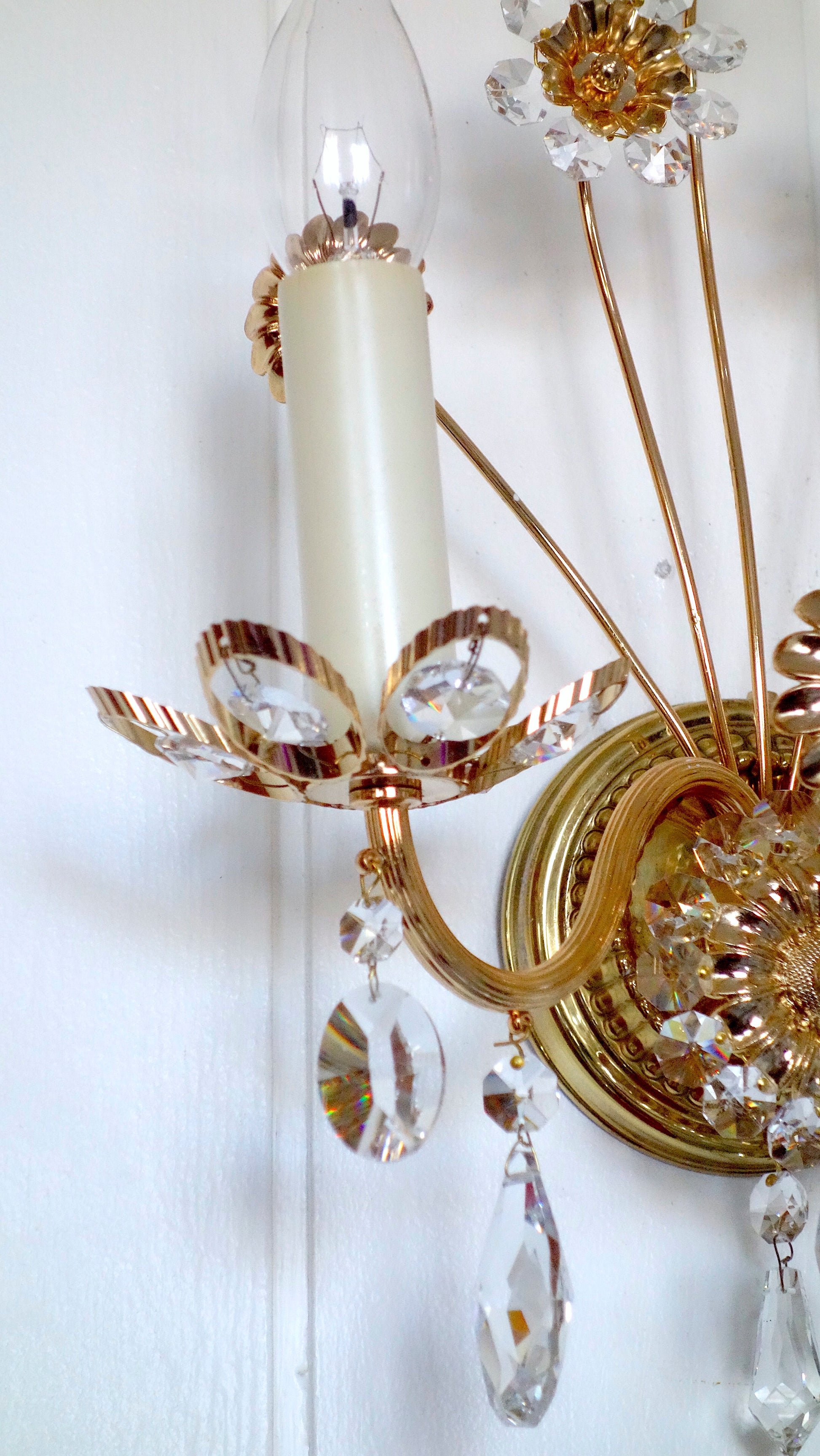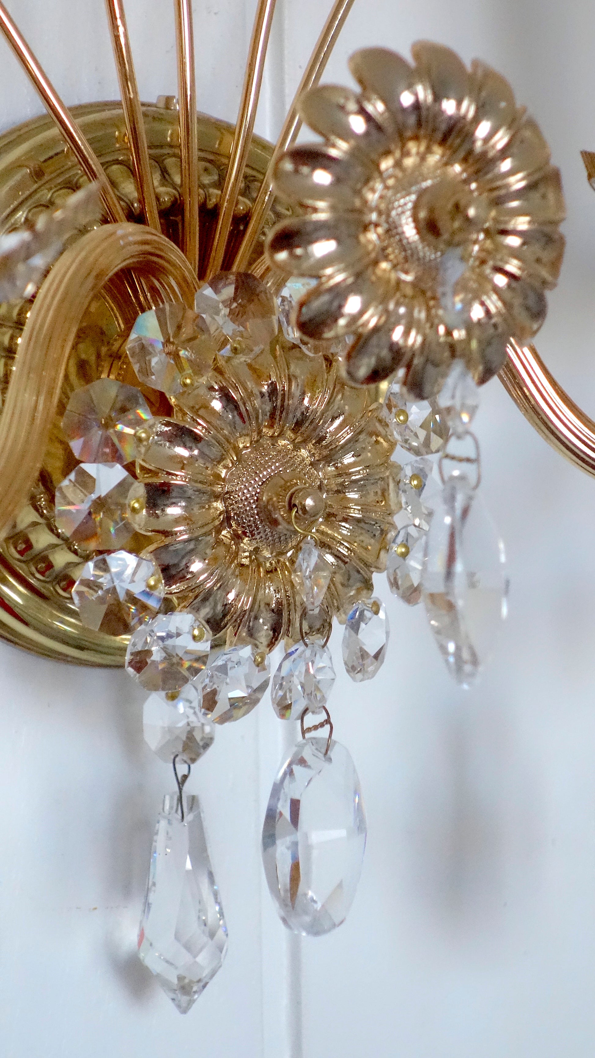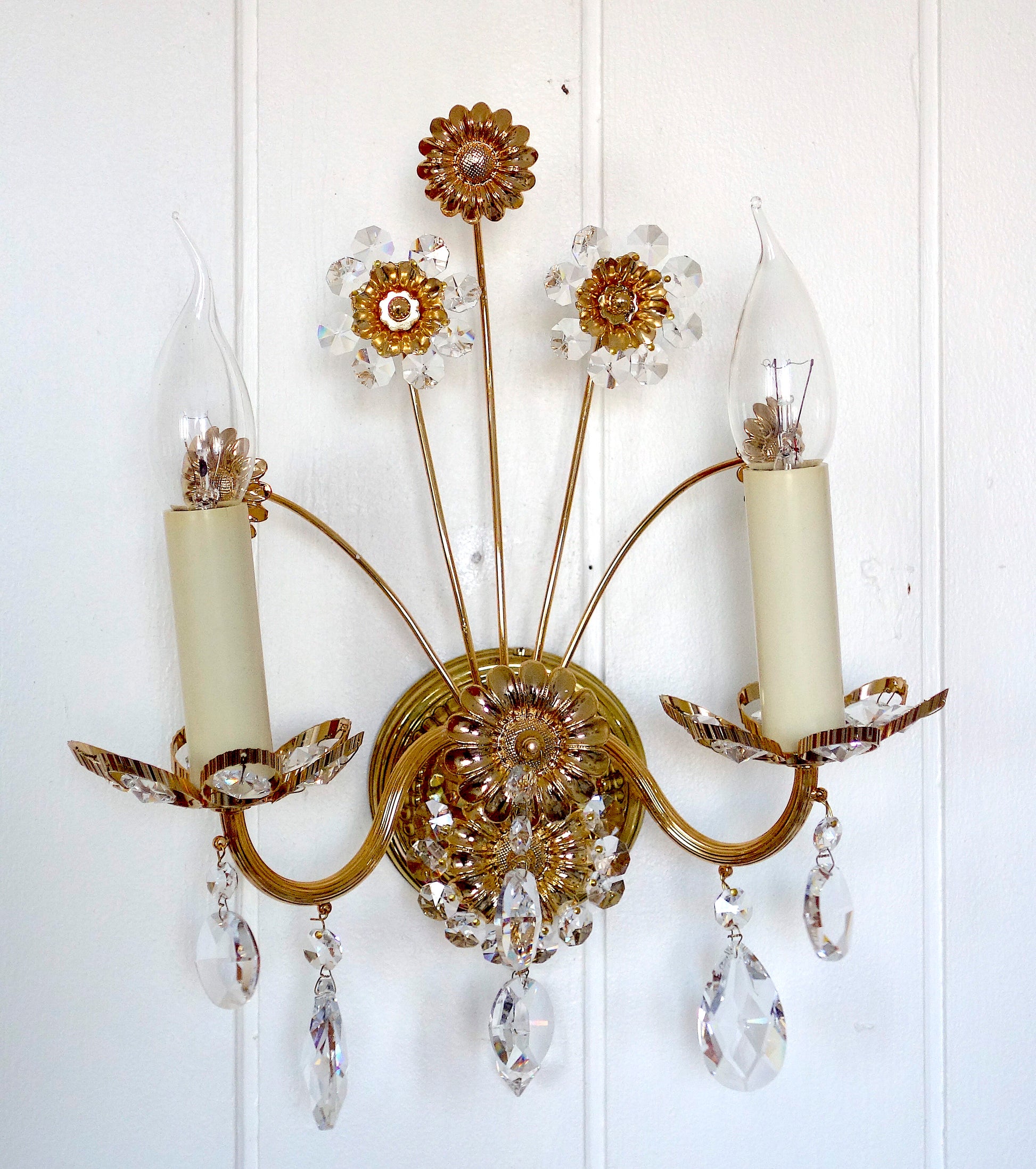 Die Wandlampe von PALWA aus Bleikristall und Messing ist ein Vintage-Highlight aus den 1960er.