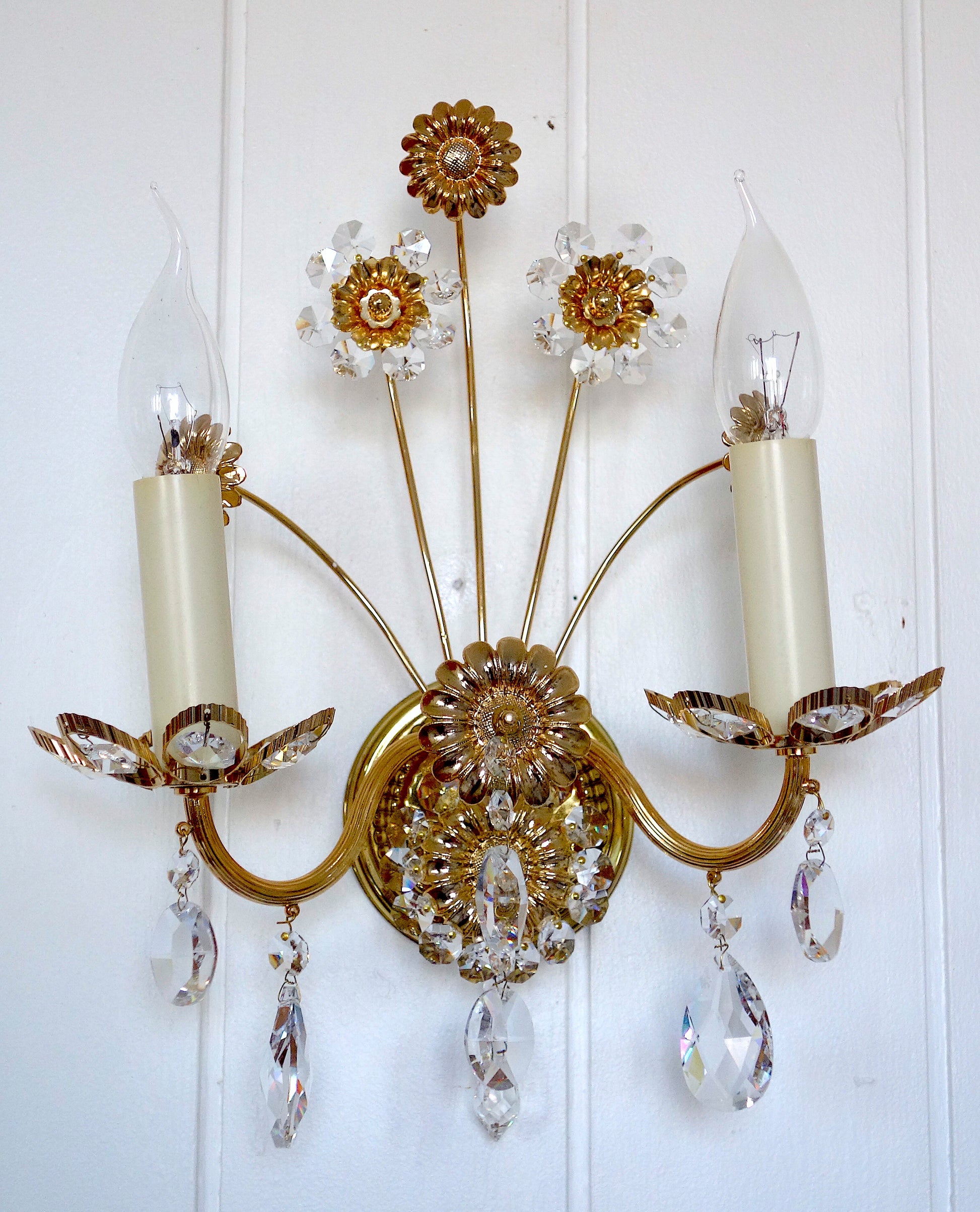 Sehr Hochwertige Messing Bleikristall Palwa Wandlampe, 1960er