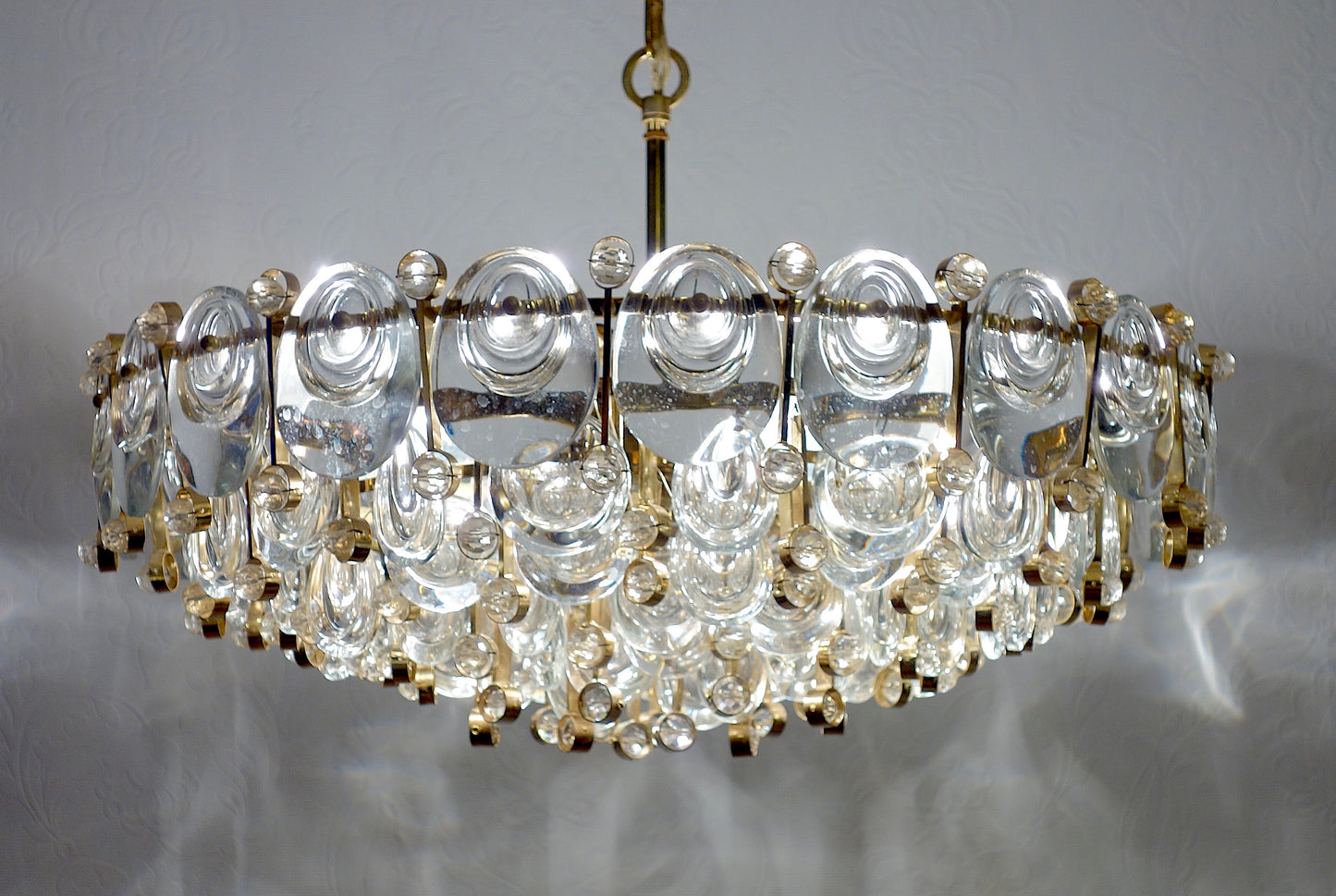 Der Kronleuchter von Palwa aus Kristallglas und Messing ist ein Vintage-Highlight aus den 1960er.