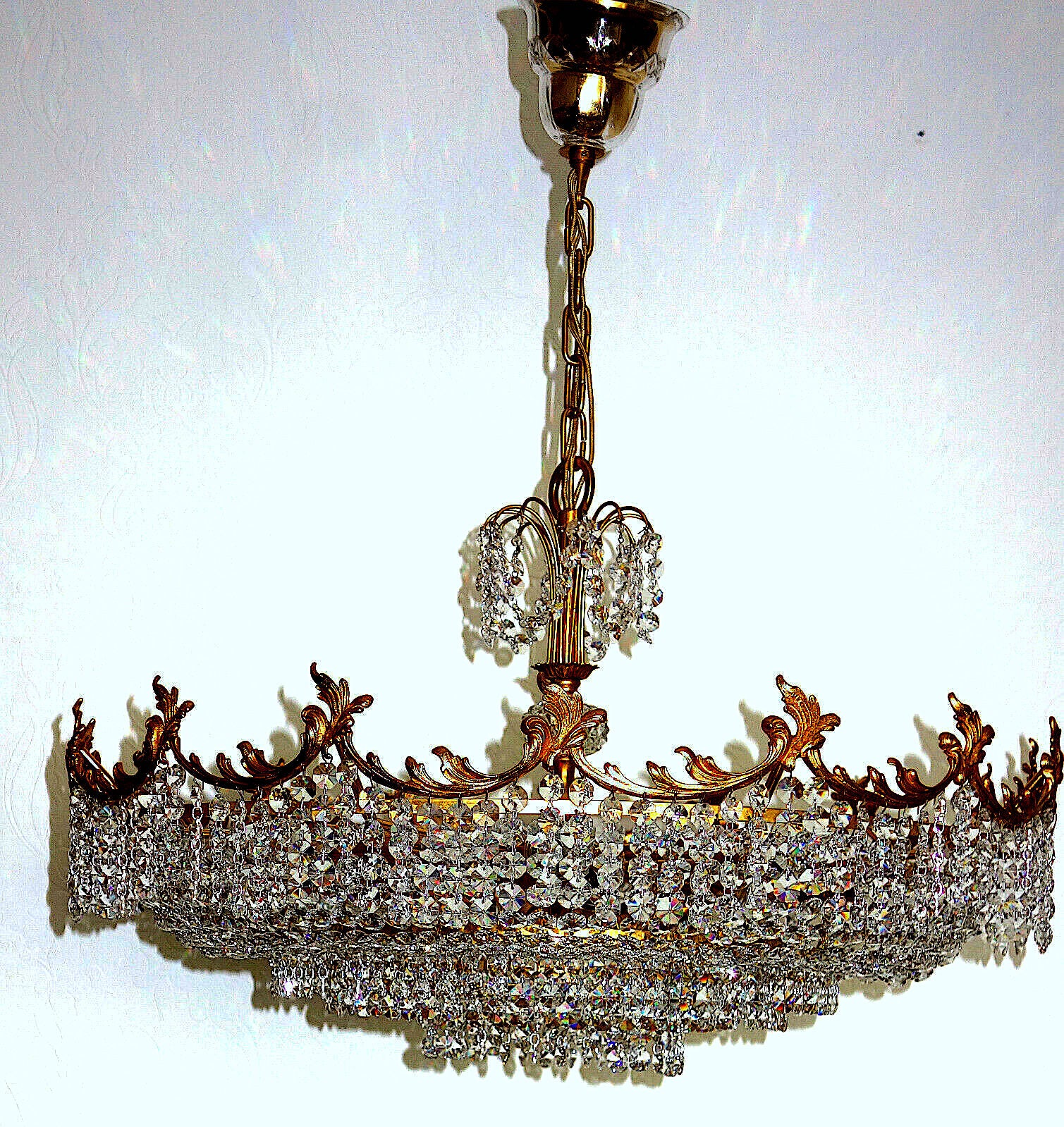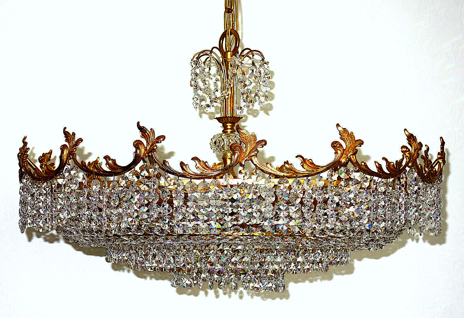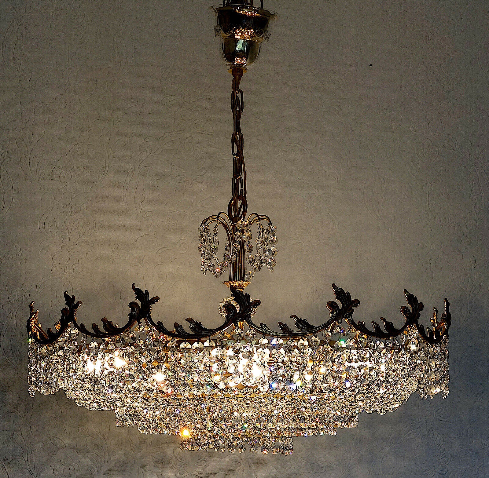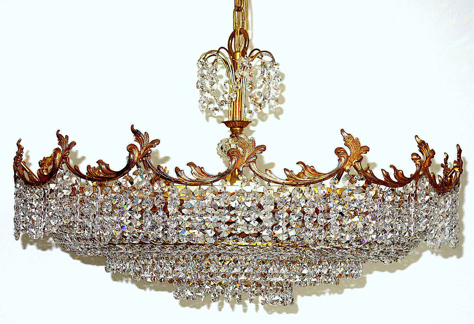 XXL Antik PALWA Messing Bleikristall Kronleuchter, Lüster 12 Flammig