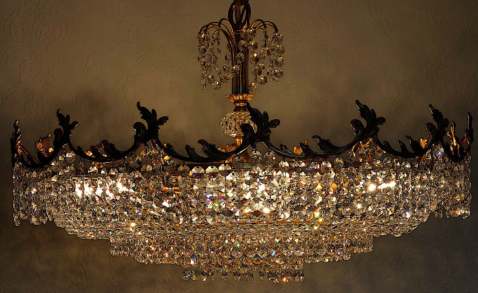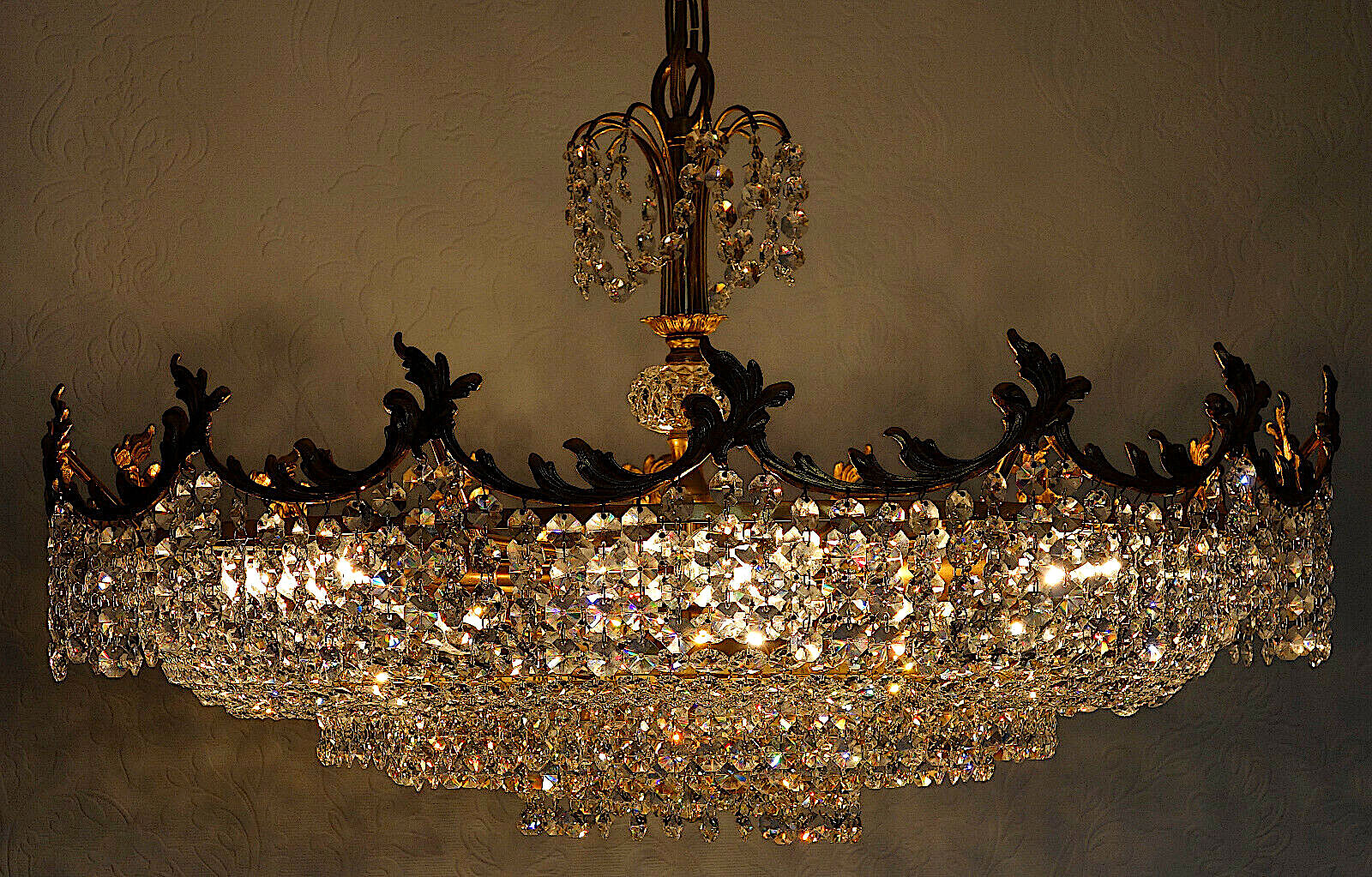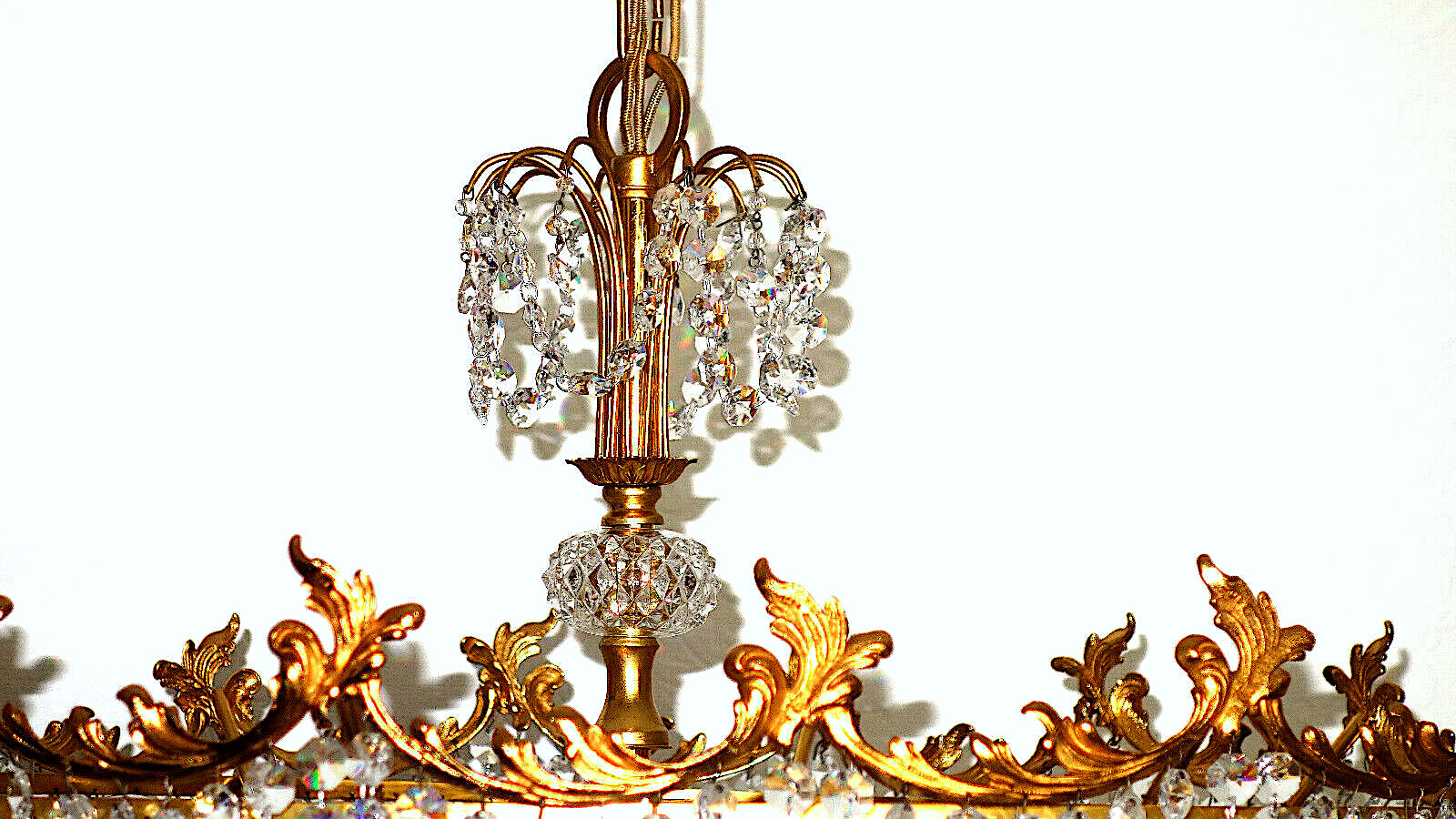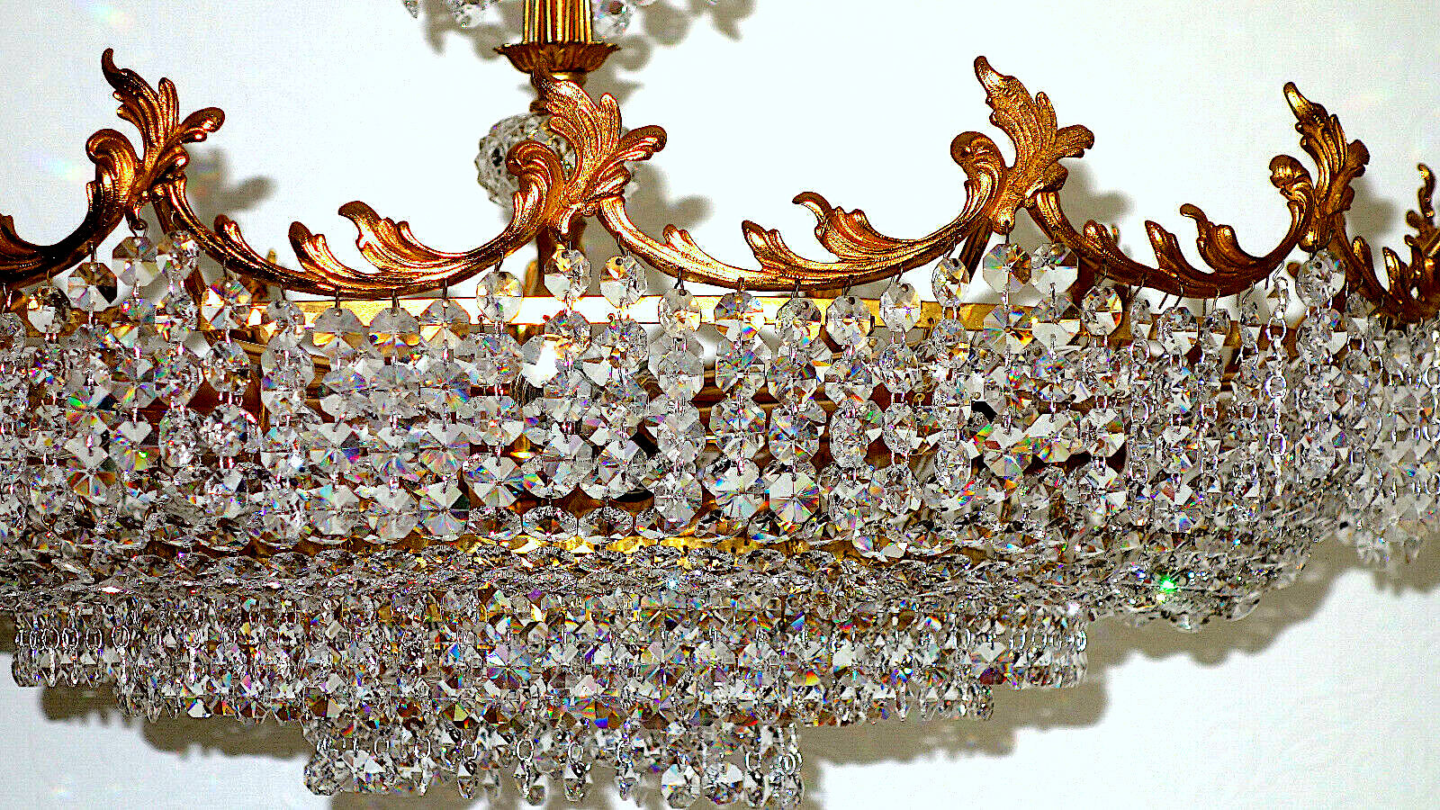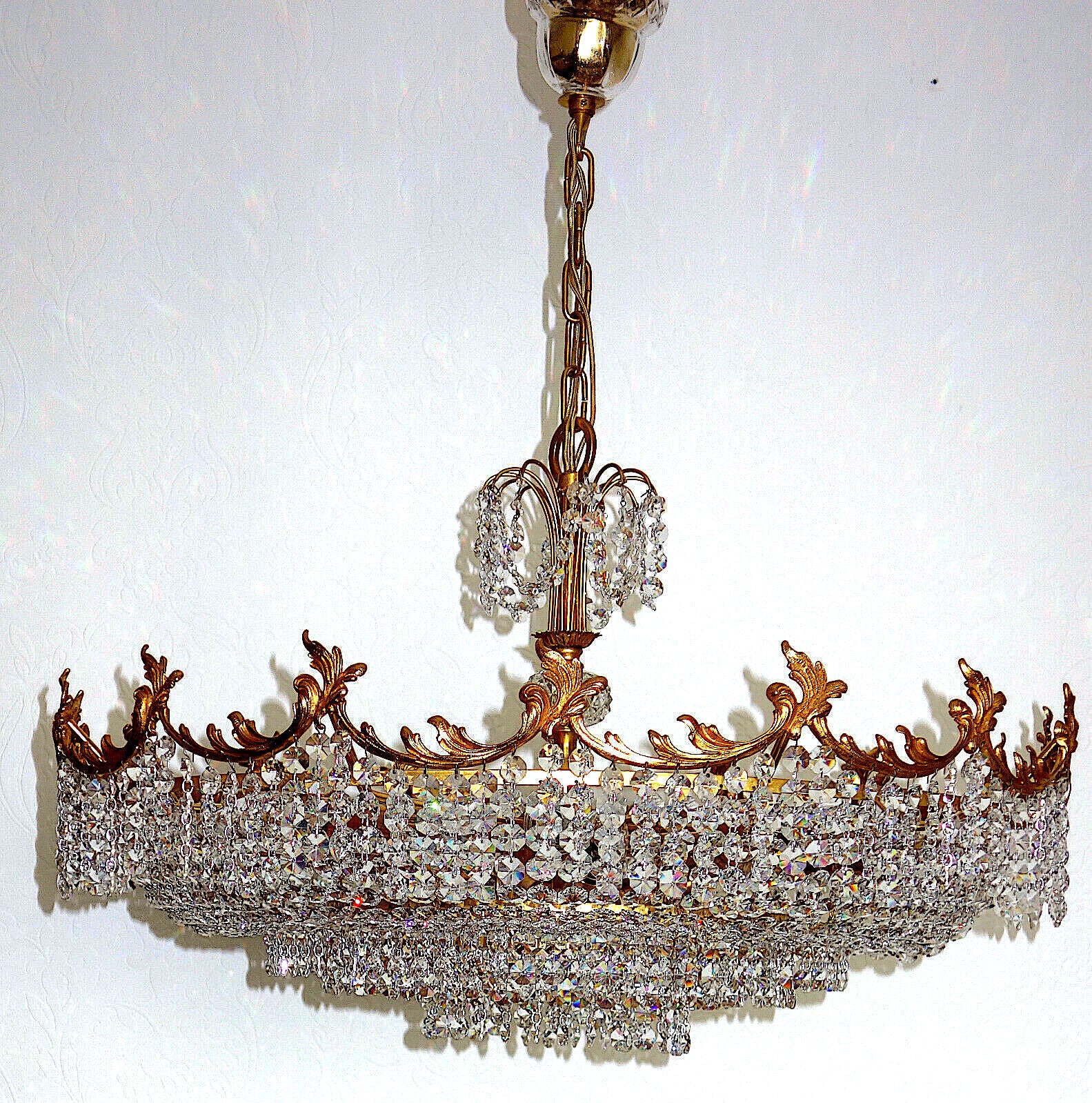 XXL Antik PALWA Messing Bleikristall Kronleuchter, Lüster 12 Flammig